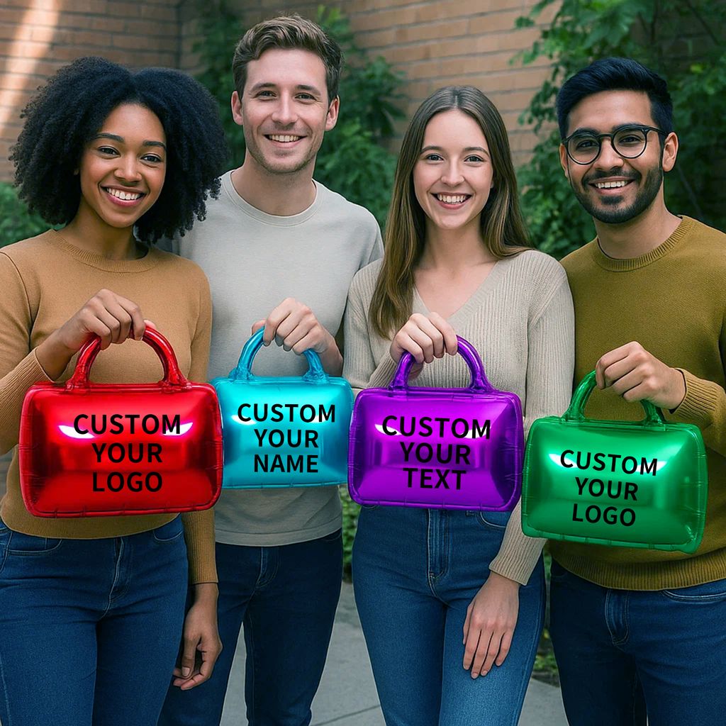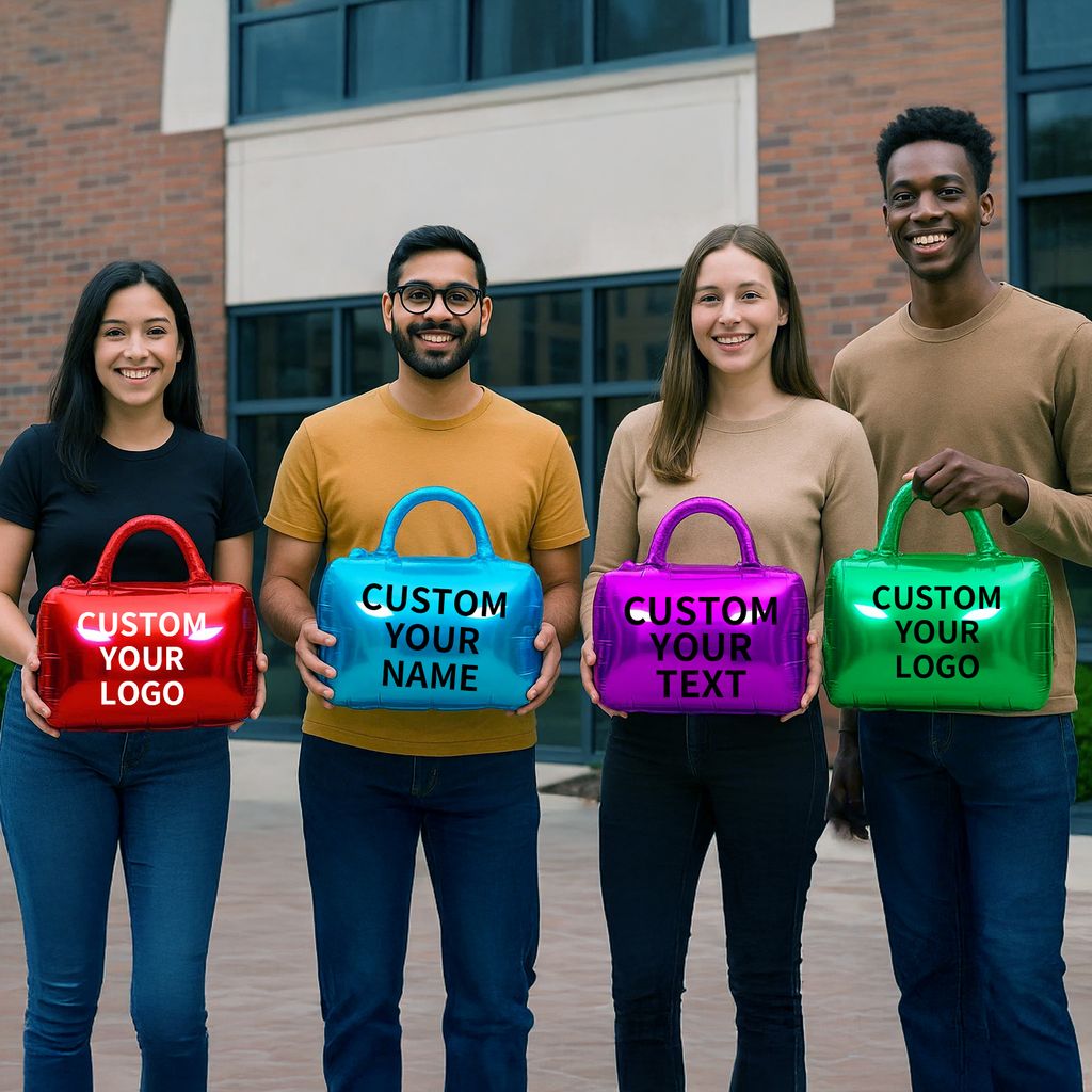 Foil Balloons: Customizable foil balloons are available, including 18-inch round foil balloons, heart-shaped foil balloons, and star-shaped foil balloons. Also available are 20-inch x 20-inch handbag-shaped foil balloons and 24-inch x 19-inch cloud-shaped foil balloons.