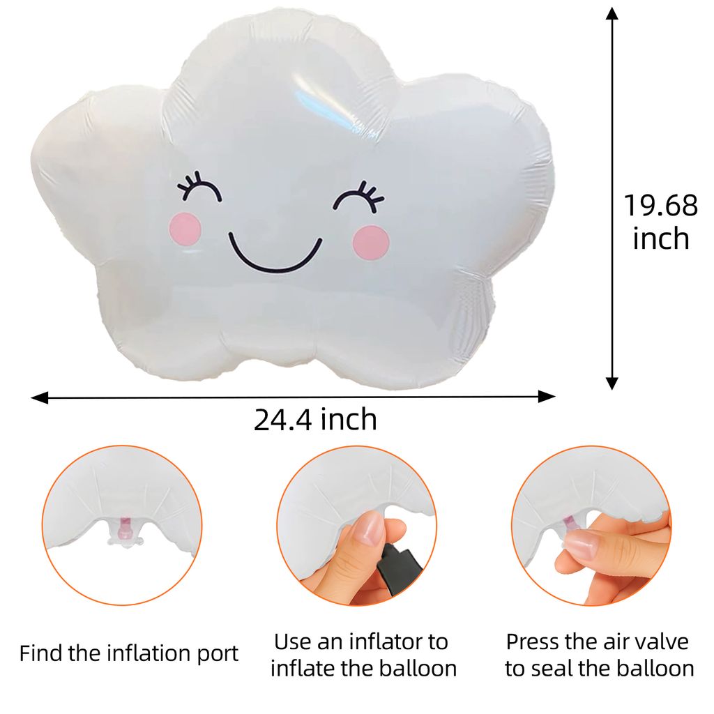 50PCS Decoration Set : Includes 50 cloud foil balloons, each measuring approximately 24 inches when inflated, suitable for backdrop displays, hanging décor, and table arrangements