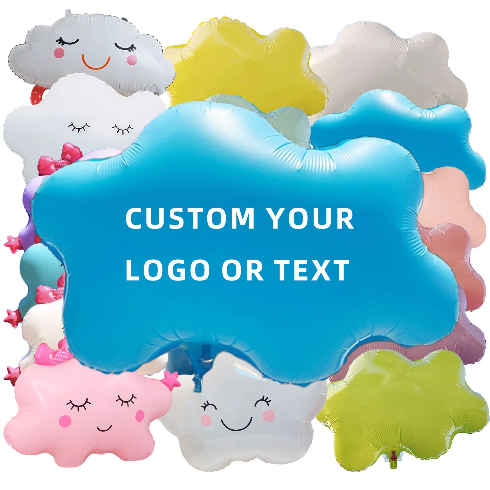 Smiley Cloud Design : Each balloon features a simple smiling cloud shape with a clean and soft appearance that works well with different decoration styles