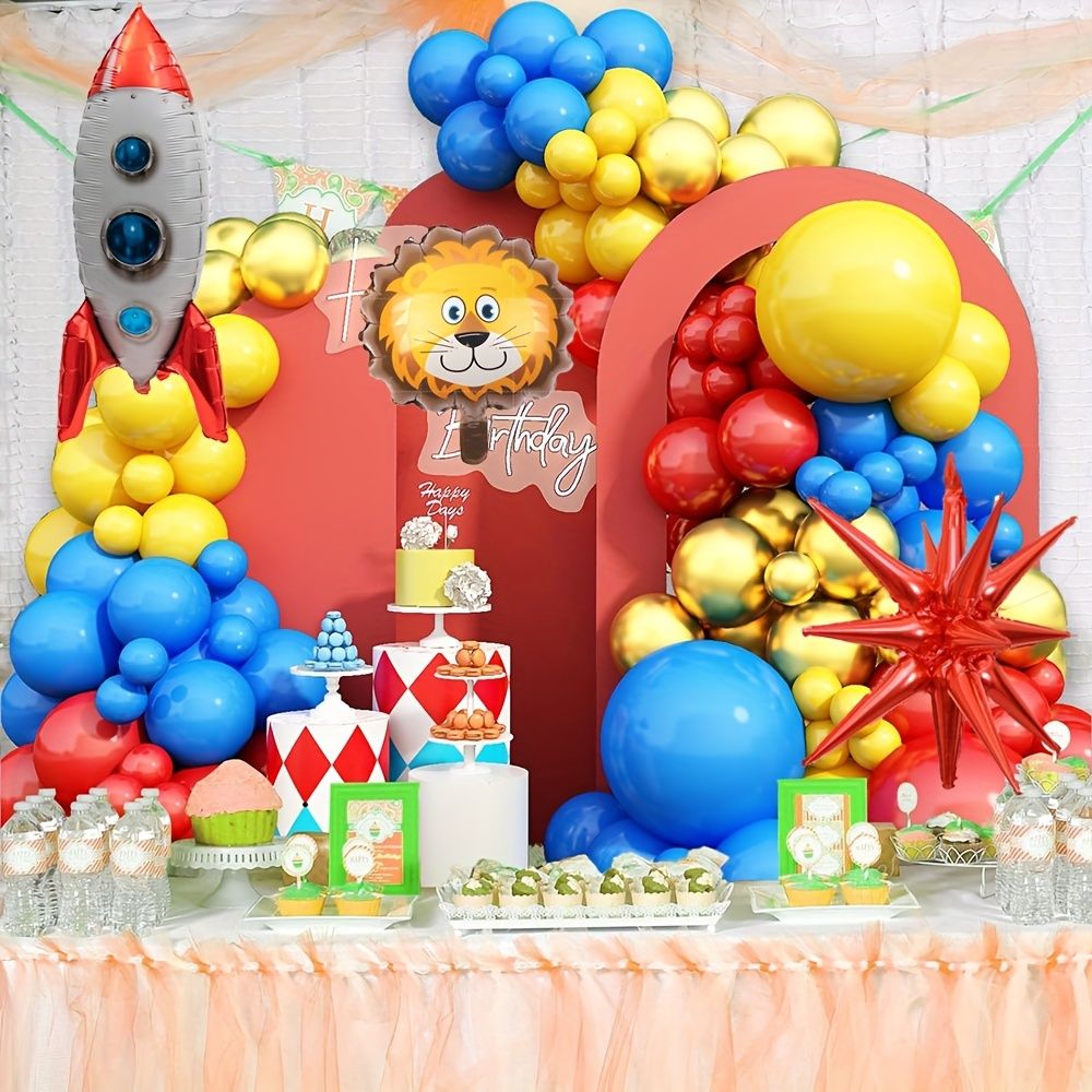 127PCS Circus Animal Balloon Arch Kit,Lion Rocket Aluminum Film Balloon Suitable for Birthday Party Carnival Decoration Supplies