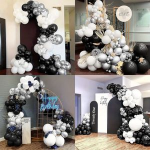 131pcs Black Silver White Balloon Set, Used for Birthday, Engagement, Anniversary, Graduation Ceremony, Single Party Decoratio
