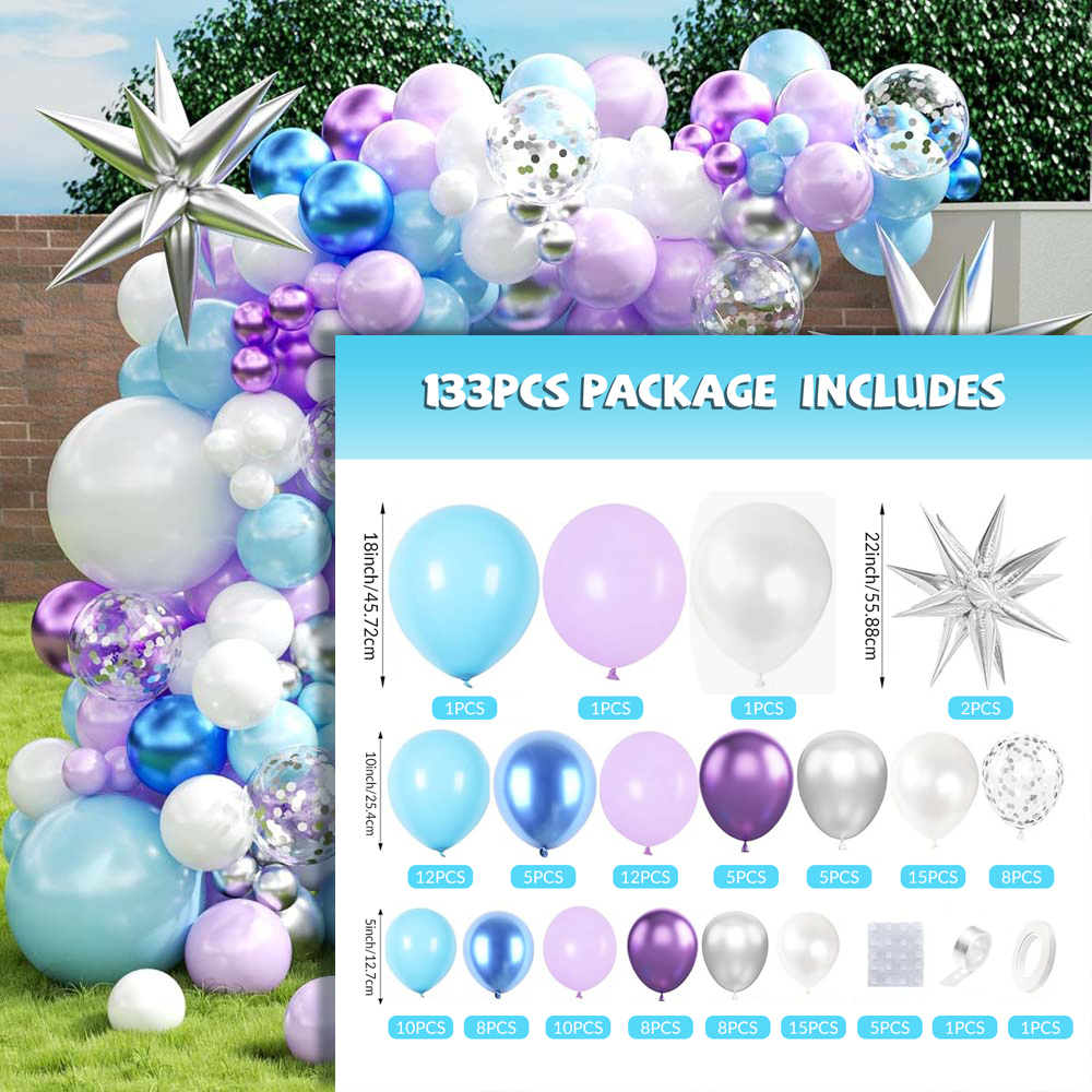 133pcs Frozen-themed Balloon Garland Set, Suitable for Birthday Parties, Winter Event Celebrations and Holiday Celebrations