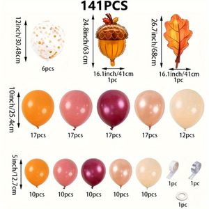 141pcs Fall Balloon Wreath Arch Kit - Suitable for Thanksgiving, Birthday, Bachelor Party, Graduation Ceremony Decoration