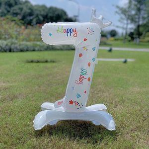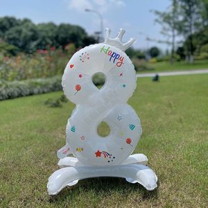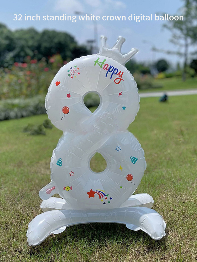 32 Inch White Number Stand 0-9 Shape Balloons Aluminum Film Birthday Party Decor Kid Toy Anniversary Balloons