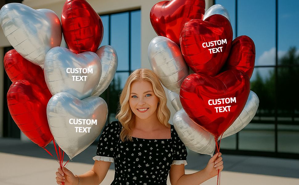20 Pcs 18 inch Custom Heart Foil Balloons with Your Picture,Personalized Birthday, Anniversary, Memorial, Father Day, Bachelorette Party Decorations with Logos, Photos, and Messages